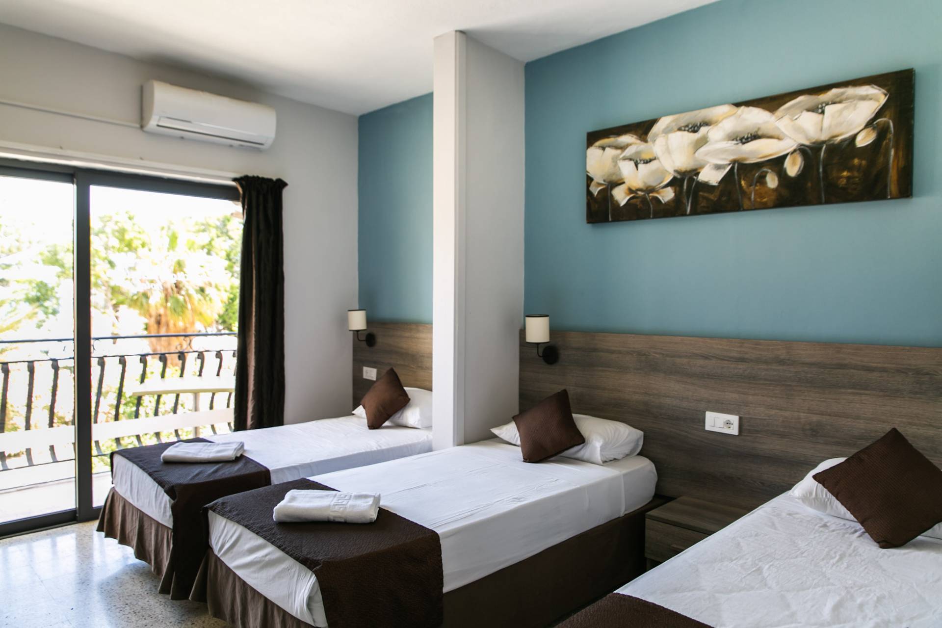 The 98 rooms, spread across three floors and served by a lift, are functionally furnished and come equipped with ensuite bathrooms, direct-dial telephones, air conditioning, satellite TV, and free Wi-Fi. Room options include single, double, triple, and even quadruple bedrooms, offering flexibility for both individuals and groups.